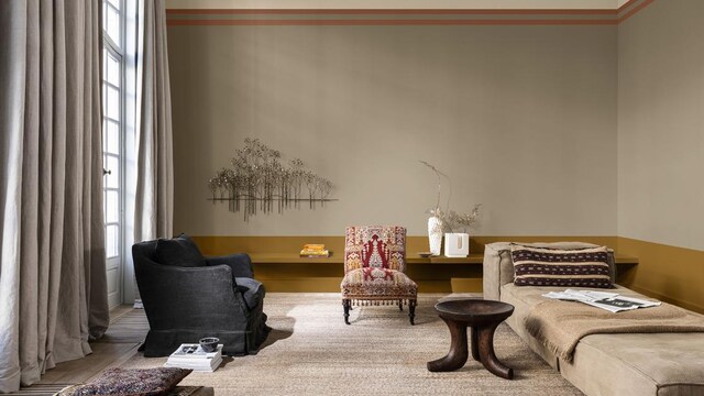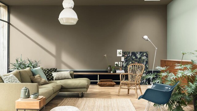 Living room wall with Brave Ground Colour of the Year 2021