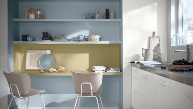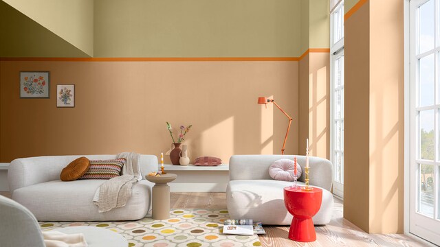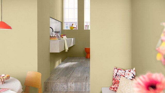 野麥黃Wild Wonder™ 與四組輕鬆上手的調色盤可以幫助您讓家中的任何房間煥然一新。想要獲得更多創意靈感和專業建議,請查看我們的實用配色指南和教學影片。
